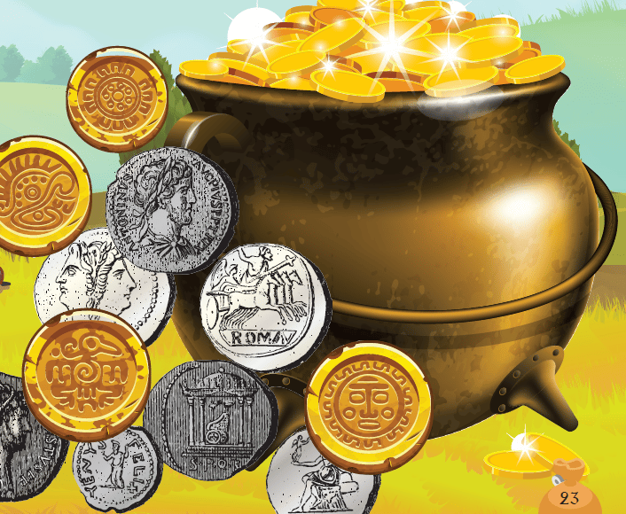 Si astfel, aventura banilor a inceput! Primii bani au fost creati din materiale precum scoici, pietre pretioase si chiar bucati de metal. Dar oamenii au observat ca aceste obiecte nu erau intotdeauna usor de transportat sau de schimbat, asa ca au inceput sa creeze monede.