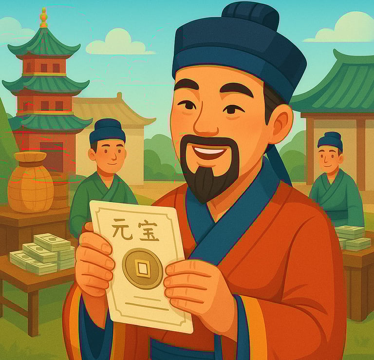 Cu timpul, hartia a devenit populara si pentru bani. Primii bani din hartie au aparut in China, iar mai tarziu in alte parti ale lumii. Banii de hartie puteau fi mai usor de transportat si de facut decat monedele din metal.