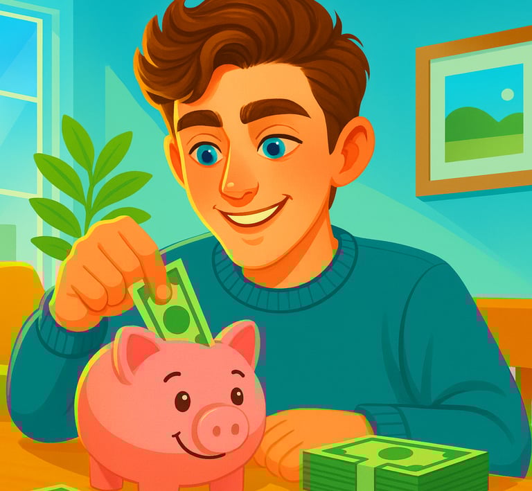 O parte din banii castigati sunt pusi deoparte pentru viitor. Acest lucru se numeste economisire. Ei pot fi pusi intr-o cutie de economii sau intr-un cont bancar special.