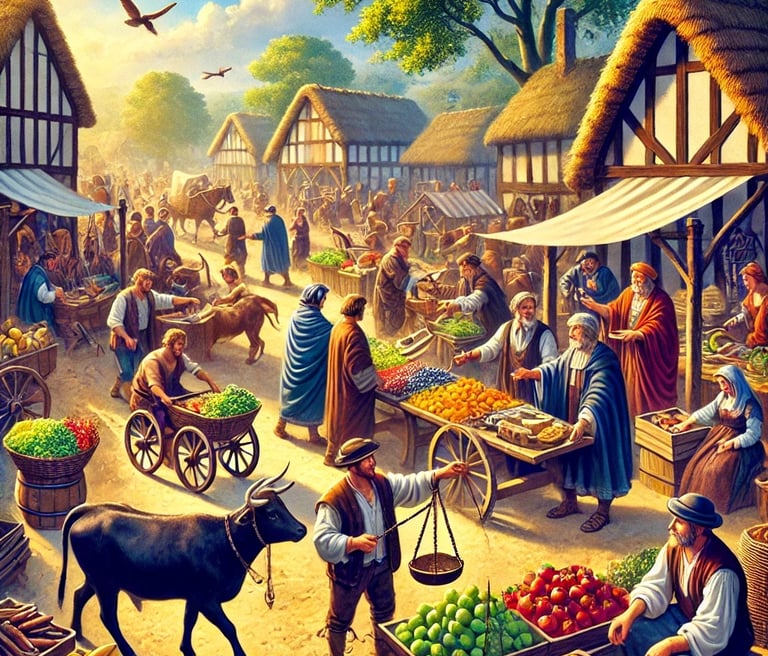 Odata, demult, demult, intr-o lume fara bani, oamenii faceau schimb de lucruri pentru a obtine ceea ce aveau nevoie. Un fermier putea schimba legumele lui cu laptele unui vecin sau poate un sac de grau pentru o haina noua. Acest schimb se numea troc. A venit insa un moment cand oamenii au inceput sa simta ca au nevoie de ceva mai usor de folosit pentru a face schimb.