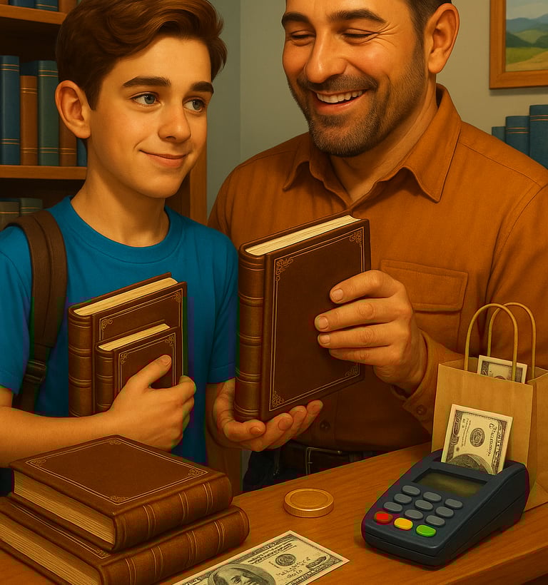 Asadar, dragi copii, istoria banilor este o poveste interesanta despre cum oamenii au gasit moduri inteligente de a face schimb si de a gestiona resursele lor. Astazi, banii ne ajuta sa traim vieti mai usoare si sa ne indeplinim visele. Invatati sa-i gestionati cu intelepciune si veti avea parte de aventuri financiare minunate in viitor!